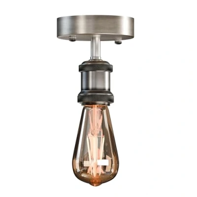 DC VOLTAGE Single Head Fully Earth Ceiling Light Retro Flush Mount E27 Lamp Holder Sconce Chandeliers Pendent Set (Satin Nickel with Bulb)
