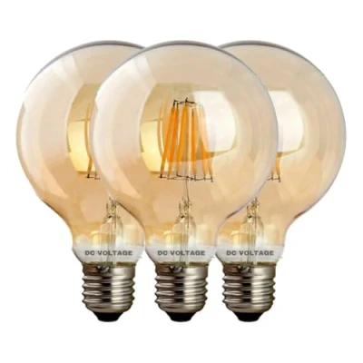 DC VOLTAGE, Vintage LED E27 Bulb, Edison G95 8W Screw Light Non Dimmable Filament Warm White 2700K Amber Glass, 800 Lumen Retro Style Old Fashioned 90% Energy Saving 220V 3 Pack