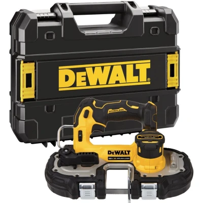AmazonThe DEWALT DCS377 XR Brushless Compact Bandsaw is ideal for cutting lengths of metal, including threaded rod, Unistrut and steel pipework. It creates little or no sparks when cutting metal and produces a smooth cut, leaving surfaces burr-free. A variable speed dial provides complete user control in a variety of materials. Designed for one-handed use, the unit is well balanced and easy to handle in all orientations, including overhead. Supplied as a Bare Unit - No Battery or Charger. Supplied with: 1 x Variable Pitch Bi-Metal Blade 18 TPI and 1 x TSTAK™ Kitbox. Specification: No Load Speed: 150-380/min.Max. Cutting Height: 46mmWeight: 3kg (without battery), Weight: 2.20462262 pounds, Manufacturer: DEWALT