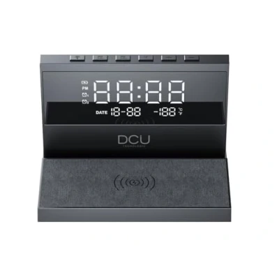 DCU TECNOLOGIC Desk Alarm Clock Fast Wireless Charging Adjustable Night Light 2 Customizable Alarms