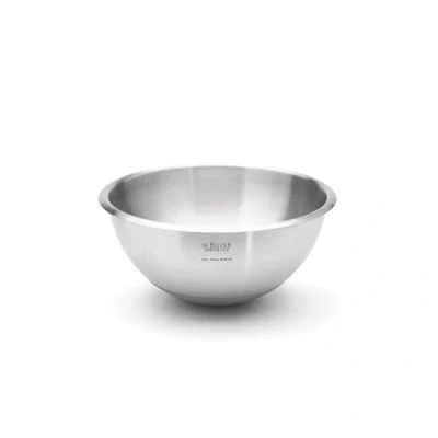 De Buyer has developed a stainless steel, half-spherel mixing bowl With a base covered in silicone The bowl is stable and never slips during use The interior graduations are also practical 24 cm in diameter and 0.7 mm thick