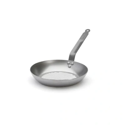 De Buyer 5530.26 Carbone Plus Round Grill Frying Pan with Riveted Steel Strip Handle, 26 cm Diameter
