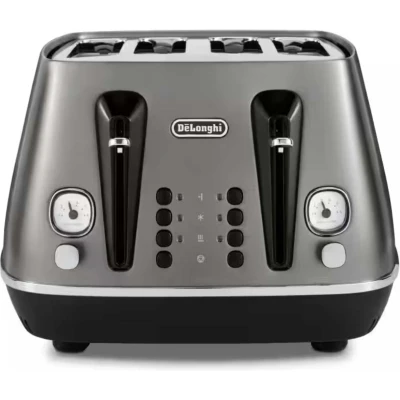 De'Longhi Distinta Titanium CTIN4003.TB, 4 Slot Toaster, Reheat, 6 Browning Settings, Defrost and Cancel Functions, Pull Crumb Tray, 1800W, Black