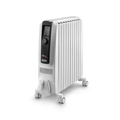 The De'Longhi Dragon 4 Oil Filled Radiator (TRD40820E) is a 2000W heater with 8 enlarged fins, suitable for rooms up to 60 m³, featuring a 24-hour digital timer, ECO energy-saving function, and efficient Chimney Effect design for rapid, customizable heating.