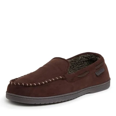 Dearfoams Men's Moccasin with Whipstitch Slipper, Coffee Microsuede, X Large UK