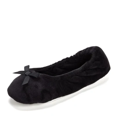 Dearfoams Women's Layla Ballerina with Suede Outsole Slipper, Black, Small UK