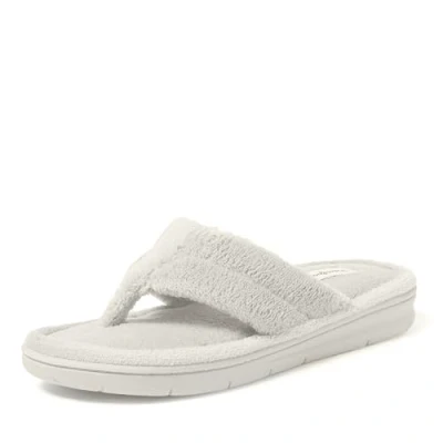 Dearfoams Women's Melanie Terry Thong Slipper, White Muslin, 7 8