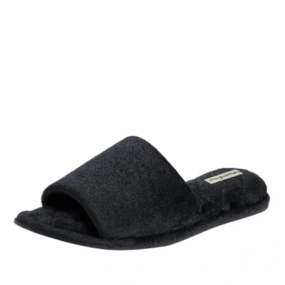 Dearfoams Women's Summer Memory Foam Indoor House Slide Slipper, Black Velour, 7/8 UK