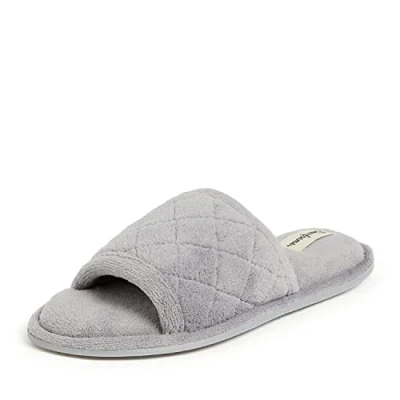 Dearfoams Women's Summer Memory Foam Indoor House Slide Slipper, Medium Grey Terry, 3/4 UK