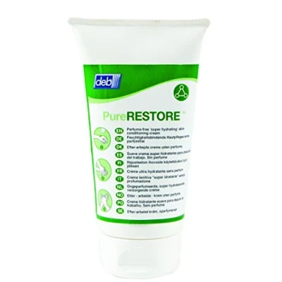 Designed for Deb Restore 1000 dispenser For use on dry, sore, chapped or normal skin Replenishes natural oils at the end of the working day Perfume free and dye free to reduce the possibility of irritation Compatible for use under various gloves