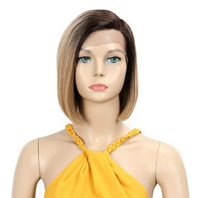 Début Lace Front Wigs for Black Women Bob White Synthetic Hair 9.5" 120g Brown Straight Swiss Heat Resistant Fibers Half Hand Tied (9.5 Inches, TT6/23C)