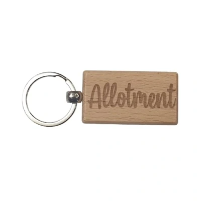 Decalarama Allotment Keyring Gift - Any Name Key Ring - Nice Cute Engraved Wooden Key Fob Novelty Custom Gardening Present
