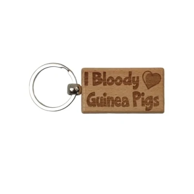 Decalarama Cute Guinea Pigs Keyring Gift I Bloody Love Engraved Wooden Key Fob Fun Novelty Nice Custom Present