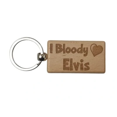 Decalarama Elvis Keyring Gift I Bloody Love Cute Engraved Wooden Key Fob Fun Novelty Nice Custom Present