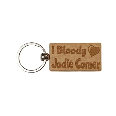 Decalarama Jodie Comer Keyring Gift - I Bloody Love - Cute Engraved Wooden Key Fob Fun Novelty Nice Custom Present