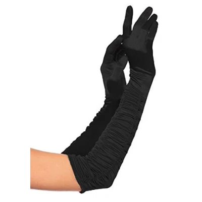 Deceny CB Party Gloves for Women Long Satin Opera Shirred Elbow (Normal size, Black)