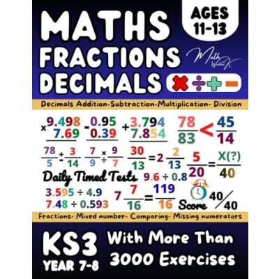Decimals and Fractions, KS3 Maths Year 7, 8, ( Adding & Subtracting, Multiplying Dividing), Comparing, Equivalent, Converting Fractions: Book ... (Answer Key Included), Grade 6 7 Math
