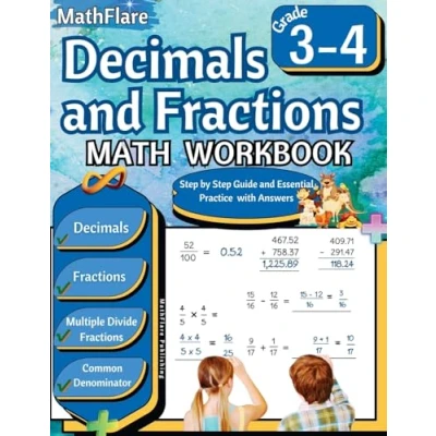 Decimals and Fractions Math Workbook 3rd 4th Grade: Grade 3 4, Operations with Fractions, Comparing Equivalent Fractions: 1 (Mathflare Workbooks)
