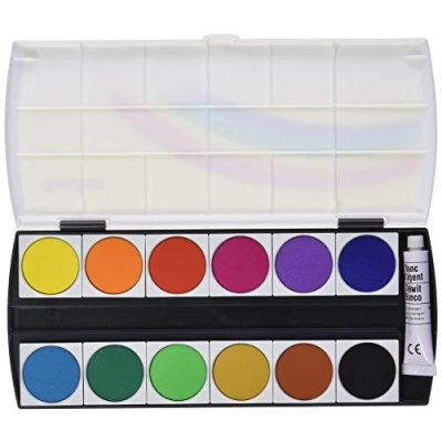 Paint box with 12 quality paints With 7.5 ml opaque white according to DIN 5023 Colourful lid with GEHA logo