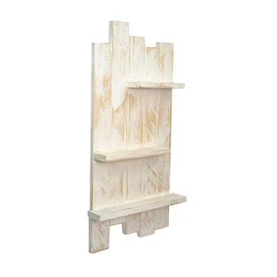 Declea Wooden Wall Shelf 3 Tier Kitchen Panel with Shelves Storage Rack Shabby Style H90 x W45 D16 cm