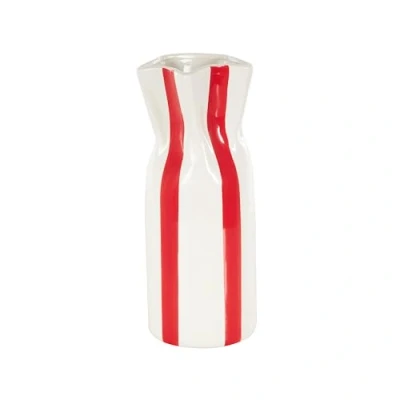 Deco 79 Ceramic Decorative Vase Round Centerpiece with Red Vertical Stripes, Flower for Home Decoration 5" x 12", White