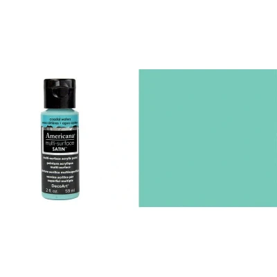 Americana MULTI-SURFACE SATIN Use this premium, satin, indoor/outdoor acrylic on almost any surface including most plastics (wood, ceramic,terracotta, most plastics, paper, metal, masonry, glass, china, porcelain, Styrofoam, canvas, fabric, papier mache, stone). They are self-sealing, so no primer or varnish is required and they offer excellent coverage in one to two coats. This special formula is designed to brush out smoothly and once fully cured, creates a durable, hard finish that is highly resistant to cleaning chemicals. Superior flow and leveling. Acid-free. Intermixable colours. Permanent, lightfast pigments. Soap and water clean-up. Water-based and non-toxic. CLDA523-2OZ MPN DA523-30