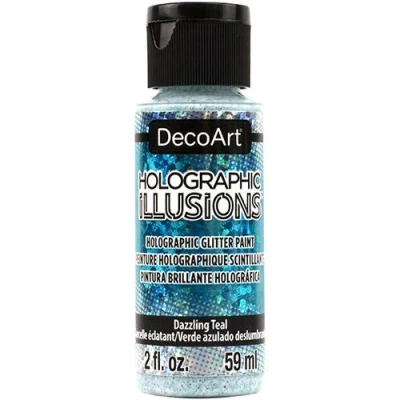 Holographic Illusions paint gives projects the magic of a true holographic glitter paint with a light-refracting rainbow of bold color. These holographic glitter flakes provide a prismatic sparkle and shine that will add -pop" to any creative project and are unique to anything on the market today. True holographic glitter Heavy glitter load in easy, brush-on formula Works on wood, walls, metal, paper, ceramics, glass, styrofoam, stone and masonary CLDADHG07-2OZ CLDADHG07-2OZ MPN DHG07-30