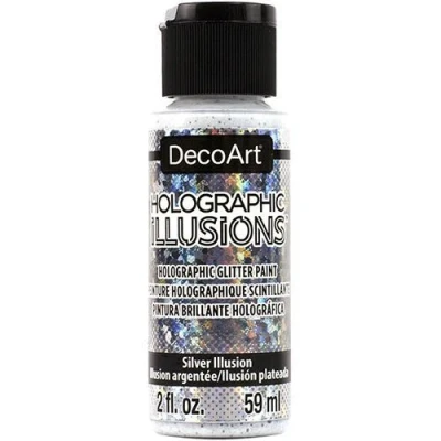 Holographic Illusions paint gives projects the magic of a true holographic glitter paint with a light-refracting rainbow of bold color. These holographic glitter flakes provide a prismatic sparkle and shine that will add -pop" to any creative project and are unique to anything on the market today. True holographic glitter Heavy glitter load in easy, brush-on formula Works on wood, walls, metal, paper, ceramics, glass, styrofoam, stone and masonary CLDADHG11-2OZ CLDADHG11-2OZ MPN DHG11-30
