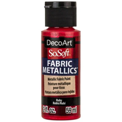 DecoArt SoSoft Fabric Paint is the softest fabric acrylic on the market. It is permanent and requires no heat setting. Once dry, it is extremely soft and flexible to the touch. It adheres to all textiles and will not crack, peel, or harden even after repeated use and washings.Metallic fabric paint made to withstand repeated washings. Add some shine to indoor home decor or fashion pieces. . DSM39-30 CLDADSM39-2OZ CLDADSM39-2OZ MPN DSM39-30
