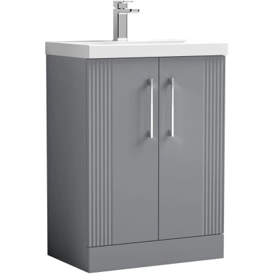 Deco Floor Standing 2 Door Vanity Unit with Basin 3 600mm Wide Satin Grey Nuie