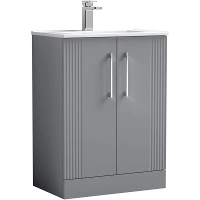Deco Floor Standing 2 Door Vanity Unit with Basin 600mm Wide Satin Grey Nuie