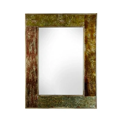 ManoManoGeneral description This rectangular wall mirror features a stunning palette of gold, brown, and rust colors, creating a rich visual effect. The frame is constructed from four rectangular strips with a weathered surface that attracts the eye. This beautiful mirror pairs well with other warm metallic tones and serves as a striking focal point in any living room or hallway.