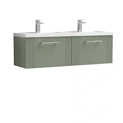 Deco Satin Green 1200mm Wall Hung 2 Drawer Vanity Unit and Double Polymarble Basins DPF894C Nuie