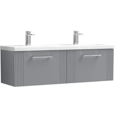 Deco Satin Grey 1200mm Wall Hung 2 Drawer Vanity Unit and Double Ceramic Basins DPF294F Nuie
