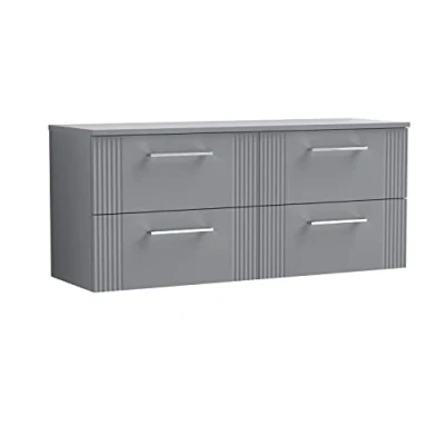 Deco Satin Grey 1200mm Wall Hung 4 Drawer Vanity Unit with Worktop DPF293W2 Nuie