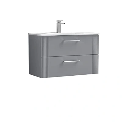 Deco Satin Grey 800mm Wall Hung 2 Drawer Vanity Unit and Minimalist Ceramic Basin DPF295B Nuie
