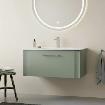 Deco Wall Hung 1 Drawer Vanity Unit with Basin 2 800mm Wide Satin Green Nuie