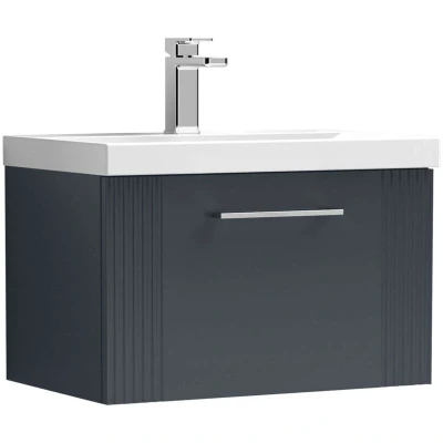 Deco Wall Hung 1 Drawer Vanity Unit with Basin 3 600mm Wide Satin Anthracite Nuie