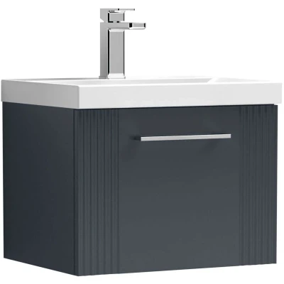 Deco Wall Hung 1 Drawer Vanity Unit with Basin 500mm Wide Satin Anthracite Nuie