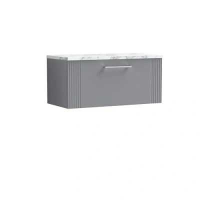 Deco Wall Hung 1 Drawer Vanity Unit with Carrera Marble Worktop 800mm Wide Satin Grey Nuie
