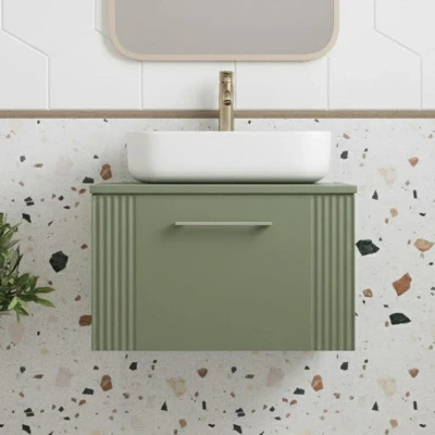 Deco Wall Hung 1 Drawer Vanity Unit with Worktop 600mm Wide Satin Green Nuie