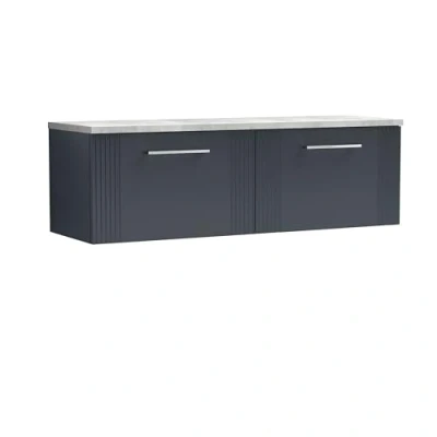 Deco Wall Hung 2 Drawer Vanity Unit with Bellato Grey Worktop 1200mm Wide Satin Anthracite Nuie