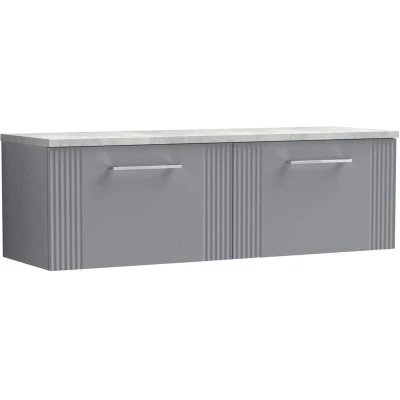 Deco Wall Hung 2 Drawer Vanity Unit with Bellato Grey Worktop 1200mm Wide Satin Nuie