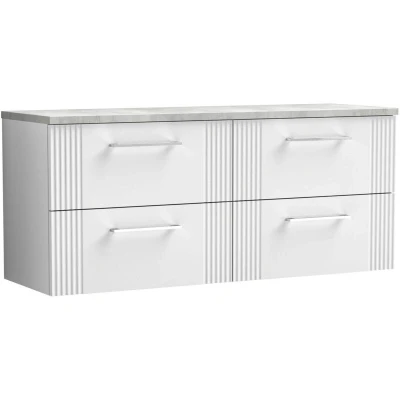 Deco Wall Hung 4 Drawer Vanity Unit with Bellato Grey Worktop 1200mm Wide Satin White Nuie