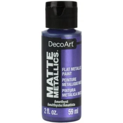 MATTE METALLICS Add a matte metallic sheen to craft projects with DecoArt Matte Metallics. Offered in a variety of trendy and classic colours, you are guaranteed excellent adhesion and rich, smooth coverage on all your craft projects. Durable, low-sheen metallic finish. Ultra-fine pigments for a rich, smooth finish. Water-based. Soap and water clean-up. . CLDADMMT13-2OZ MPN DMMT13-30