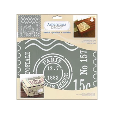 AmazonDecoart stencil Americana decor 12x 12Postcard from Paris Decoart stencils have pre-cut designs on flexible plastic that simply need to be painted onto any project It is as easy as 1-2-3 Designed for easy usage and storage Adds texture and style to your projects