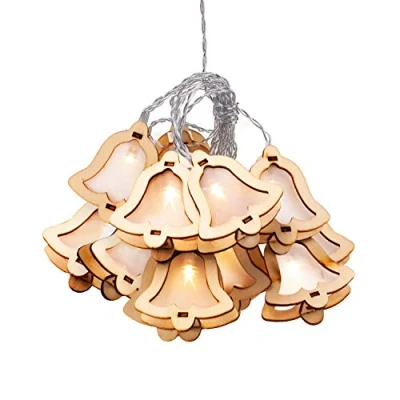 DecoKing 10 LED Fairy Lights with Timer Bells Wood Warm White Static Battery Operated Garland Wooden Bell