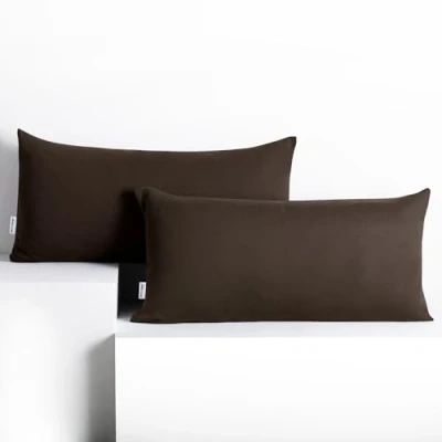 DecoKing 2 Pillowcases 40 x 80 cm Jersey 100% Combed Cotton Zip Brown Amber