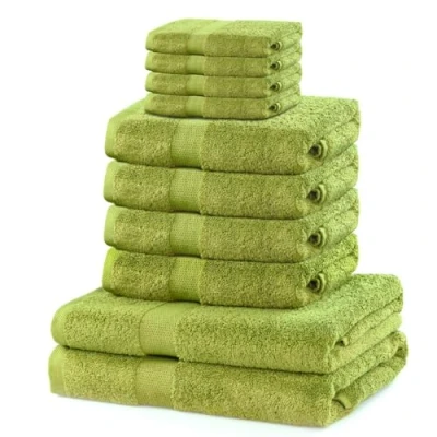 DecoKing Set of 10 Cotton Quality 525 g/m² 4 Guest Towels 30 x 50 cm Hand 100 and 2 Bath 70 140 Celadon Green Absorbent Marina