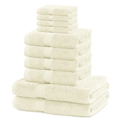 DecoKing Set of 10 Cotton Quality 525 g/m² 4 Guest Towels 30 x 50 cm Hand 100 and 2 Bath 70 140 Ecru Ivory Absorbent Marina